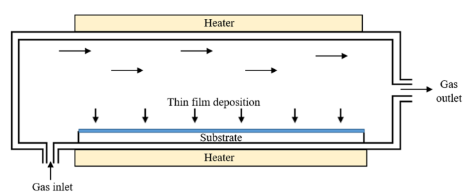 1. Reaktion esiasteet syötetään reaktiokammioon kantokaasulla. Ennen kuin ne saavuttavat substraatin, reaktiokaasut voivat käydä läpi homogeenisia kaasufaasireaktioita pääkaasuvirrassa, jolloin syntyy joitain välituotteita ja klustereita.