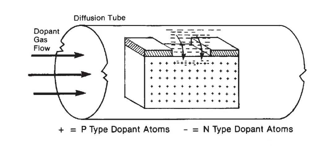 1.Korkean lämpötilan diffuusio on tavanomainen menetelmä puolijohteiden dopingille. Ajatuksena on käsitellä puolijohde korkeassa lämpötilassa, jolloin epäpuhtausatomit diffundoituvat puolijohteen pinnasta sen sisäpuolelle. Koska epäpuhtausatomit ovat tyypillisesti suurempia kuin puolijohdeatomit, atomien lämpöliikettä kidehilassa tarvitaan auttamaan näitä epäpuhtauksia varaamaan välityhjiöitä. Diffuusioprosessin lämpötila- ja aikaparametreja tarkasti säätelemällä voidaan tämän ominaisuuden perusteella ohjata tehokkaasti epäpuhtauksien jakautumista. Tällä menetelmällä voidaan luoda syväseostettuja liitoksia, kuten CMOS-tekniikan kaksoiskuopparakennetta.