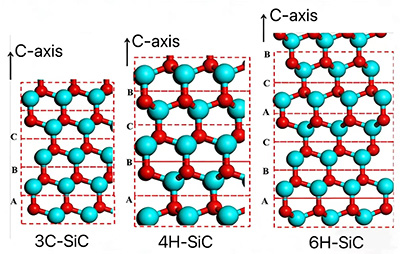 SiC-materiaali ei tietenkään koostu yhdestä tetraedristä, jossa on yksi Si-atomi ja yksi C-atomi, vaan lukemattomista Si- ja C-atomeista. Suuri määrä Si- ja C-atomeja muodostaa aaltoilevia kaksoisatomikerroksia (yksi kerros C-atomeja ja yksi kerros Si-atomeja), ja lukuisat kaksoisatomikerrokset pinoutuvat muodostaen SiC-kiteitä. Si-C-kaksoisatomikerrosten pinoamisprosessin aikana tapahtuvien ajoittain tapahtuvien muutosten vuoksi on tällä hetkellä yli 200 erilaista kiderakennetta erillisillä järjestelyillä. Tällä hetkellä yleisimmät kidemuodot käytännön sovelluksissa ovat 3C-SiC, 4H-SiC ja 6H-SiC.