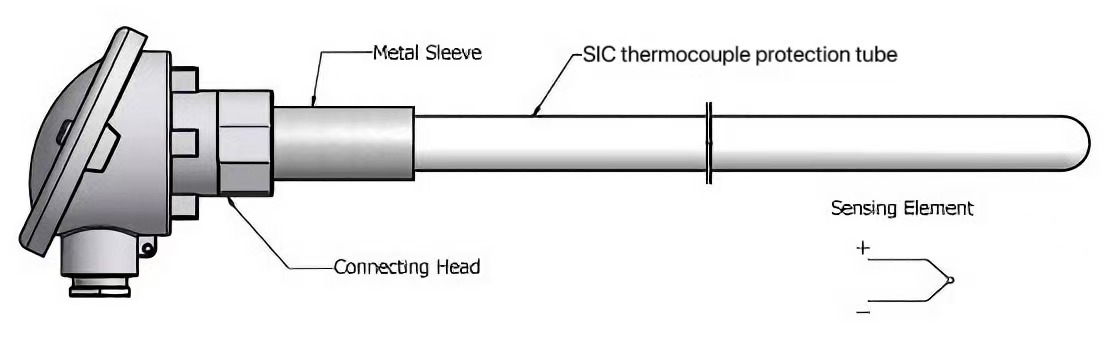 Suojakuoreksi termoelementin antureilleSIClämpöparin suojaputki sijoitetaan yleensä anturin ulkopuolelle lämpötila-anturielementin ympärille. Ne voivat suojata lämpöparia korkeilta lämpötiloilta, mekaanisilta iskuilta ja syövyttäviltä materiaaleilta. Näin ollen SIC-lämpöparin suojaputket pystyvät vähentämään lämpötila-anturielementtien vaurioitumisen riskiä ja takaamaan lämpöparianturin kyvyn mitata lämpötilan muutoksia luotettavasti ja tarkasti.