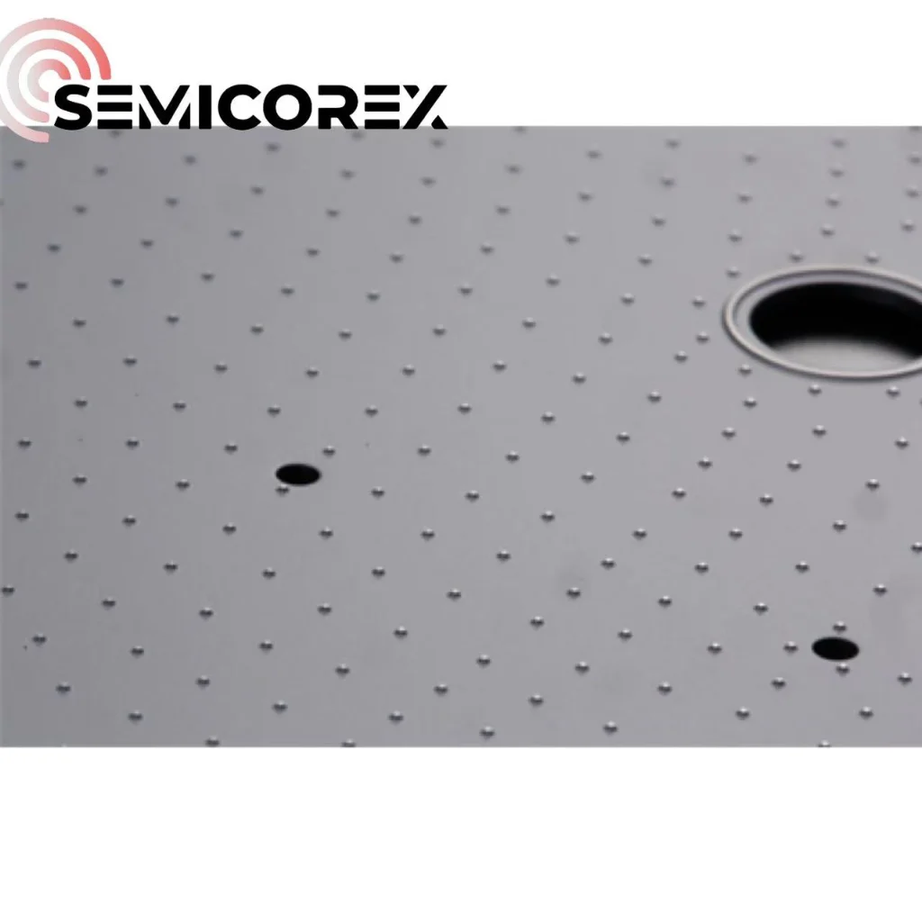 Semicorex-piikarbiditappiistukat käyvät läpi tarkkuustyöstön ja hiontaan. Tapien korkeutta, halkaisijaa ja etäisyyttä pinnalla valvotaan tarkasti. Niillä voidaan saavuttaa 0,3–0,5 μm:n iskun tasaisuus, mikä varmistaa kiekkojen optimaalisen tasaisuuden ja eliminoi merkittävästi epätasaisesta kuormituksesta johtuvan kiekon vääristymisen tai murtumisen.